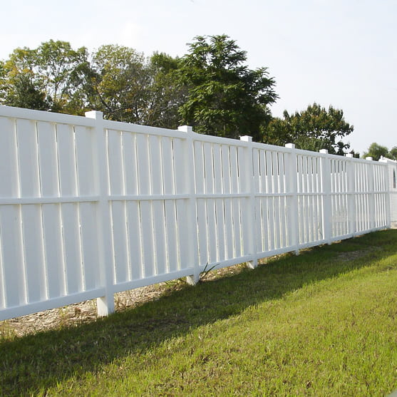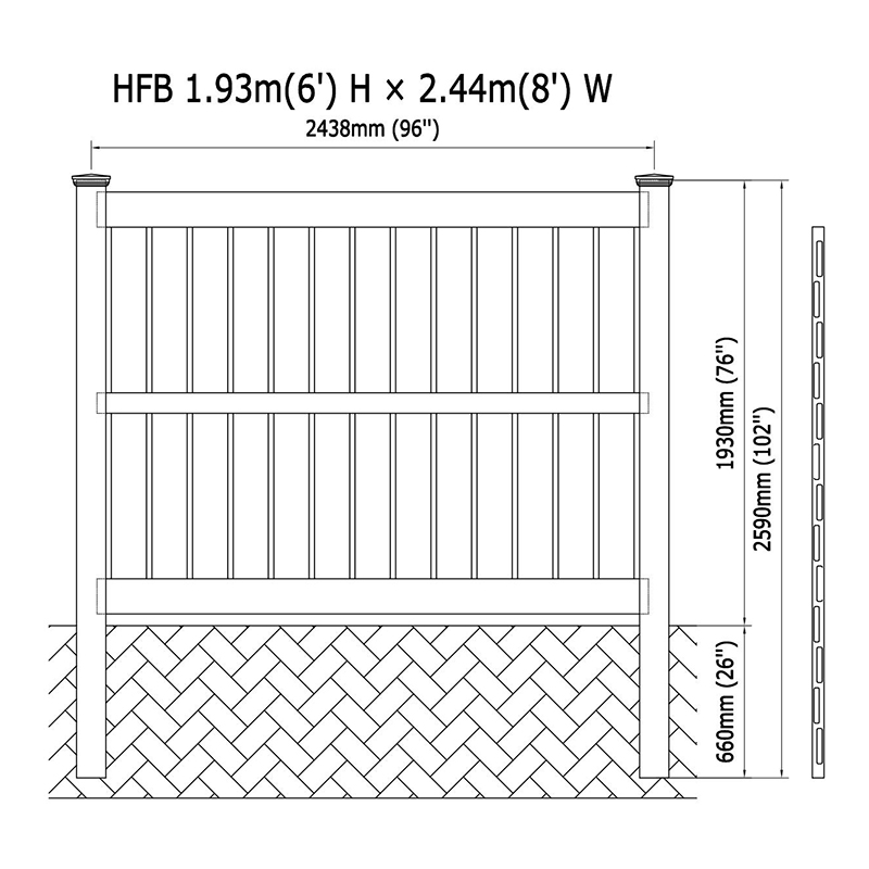 Dit hek is ontworpen voor sterkte en stabiliteit met een vooraf ingestelde bodem-, middelste en bovenste rails. Een aluminiuminzet in de onderste rail verbetert de commerciële sterkte, terwijl de piketten een standaardafstand van 7/8 "x 6" x 63 "behouden. Met bijpassende poorten ook beschikbaar, is dit hek een perfecte aanvulling om de charme en veiligheid van uw woning te verhogen.